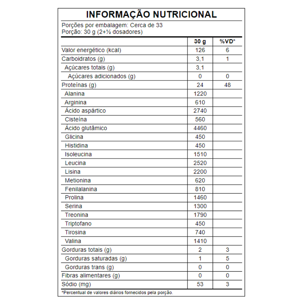 - Baixo Teor de Carboidratos e Gorduras: Formulado para fornecer proteína pura com mínima quantidade de carboidratos e gorduras, ideal para quem busca ganho muscular sem aumento de gordura corporal.